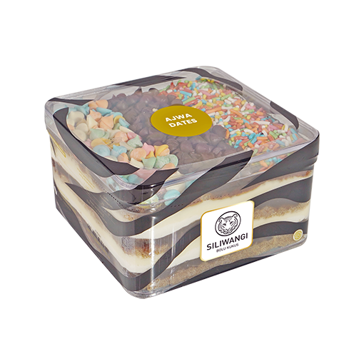 Dessert Cake Ajwa Dates memiliki 3 lapisan, dengan lapisan bolu dibawahnya berlapis dengan selai Kurma Ajwa dan di balut dengan whipped cream dan cheese cream yang lumer dimulut ditambah dengan topping choco chips dan meses.