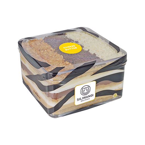 Dessert Cake Cheese Butter memiliki 3 lapisan, dengan lapisan bolu dibawahnya berlapis whipped cream dan cheese cream lumer dengan taburan topping keju, meses dan kacang yang melimpah.
