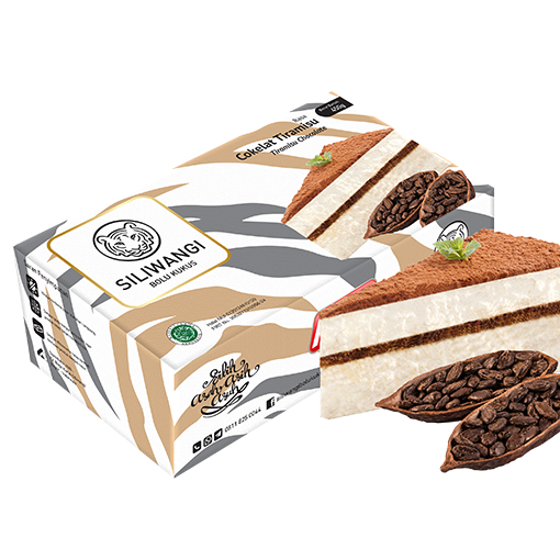 Cokelat Tiramisu, Krim cokelat dengan custard tiramisu ditaburi toping compound cokelat premium menambah rasa enak dan nikmat dari kelembutan bolu rasa cokelat dan tiramisu.